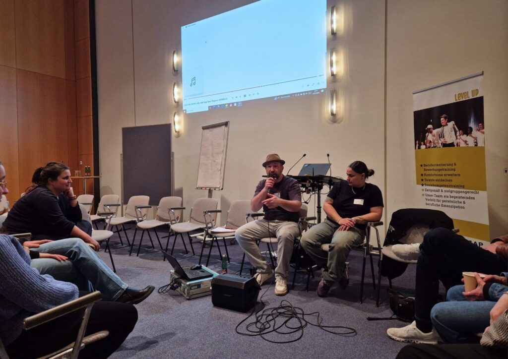 Im Workshop Schulische Bildung präsentierte Deutschlands selbsternannter erster Rapagoge Tobias Schirneck zusammen mit Melissa Ambergs seine Arbeit an Schulen in sozialen Brennpunkten. Er zeigte, wie Kinder und Jugendliche auf dem Weg zu mehr Selbstwirksamkeit unterstützt werden und welche Strukturen notwendig sind, um Lernchancen zu erhöhen.
